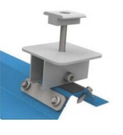 Conjunto fixador trapezoidal para cobertura em painel sandwich de painéis solares.